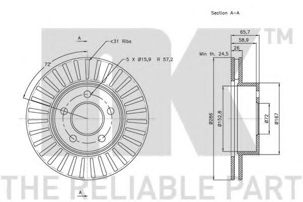 - для тормозного диска толщиной [мм]: 26
