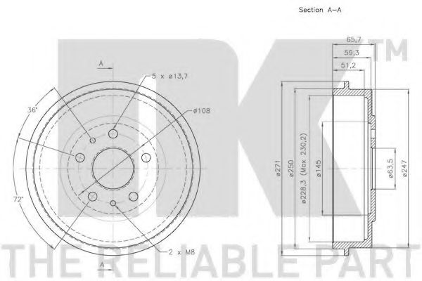 - Внутрен. диаметр торм.барабан [мм]: 228,3