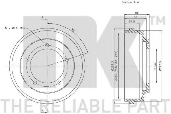 - Внутрен. диаметр торм.барабан [мм]: 254